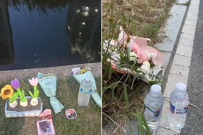 '천안 전기자전거 학대' 사건이 발생한 현장에 놓인 꽃과 간식들 / 온라인 커뮤니티